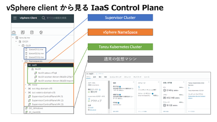 一方、Tanzu Kubernetesクラスタは、Kubernetesクラスタの構築や運用を自動化するツール群を提供します。管理者は煩雑な設定作業をせずにクラスタを効率的にデプロイでき、スケールアウトも簡単に行えます。また、IaaSコントロールプレーンは、vSphere全体のリソースを統括し、プロビジョニングや監視、スケーリングといった基本機能を提供することで、運用管理を効率化します。
